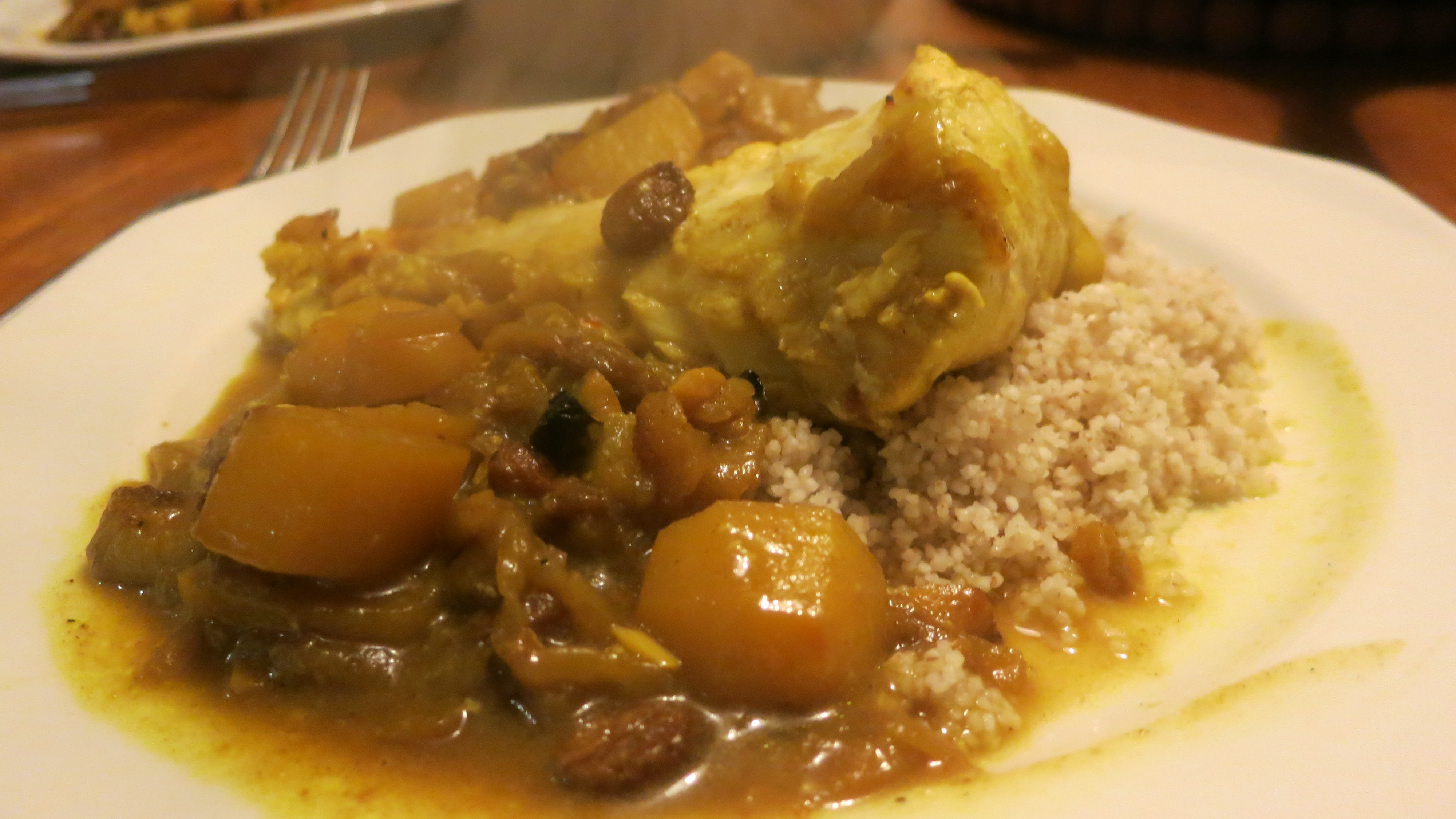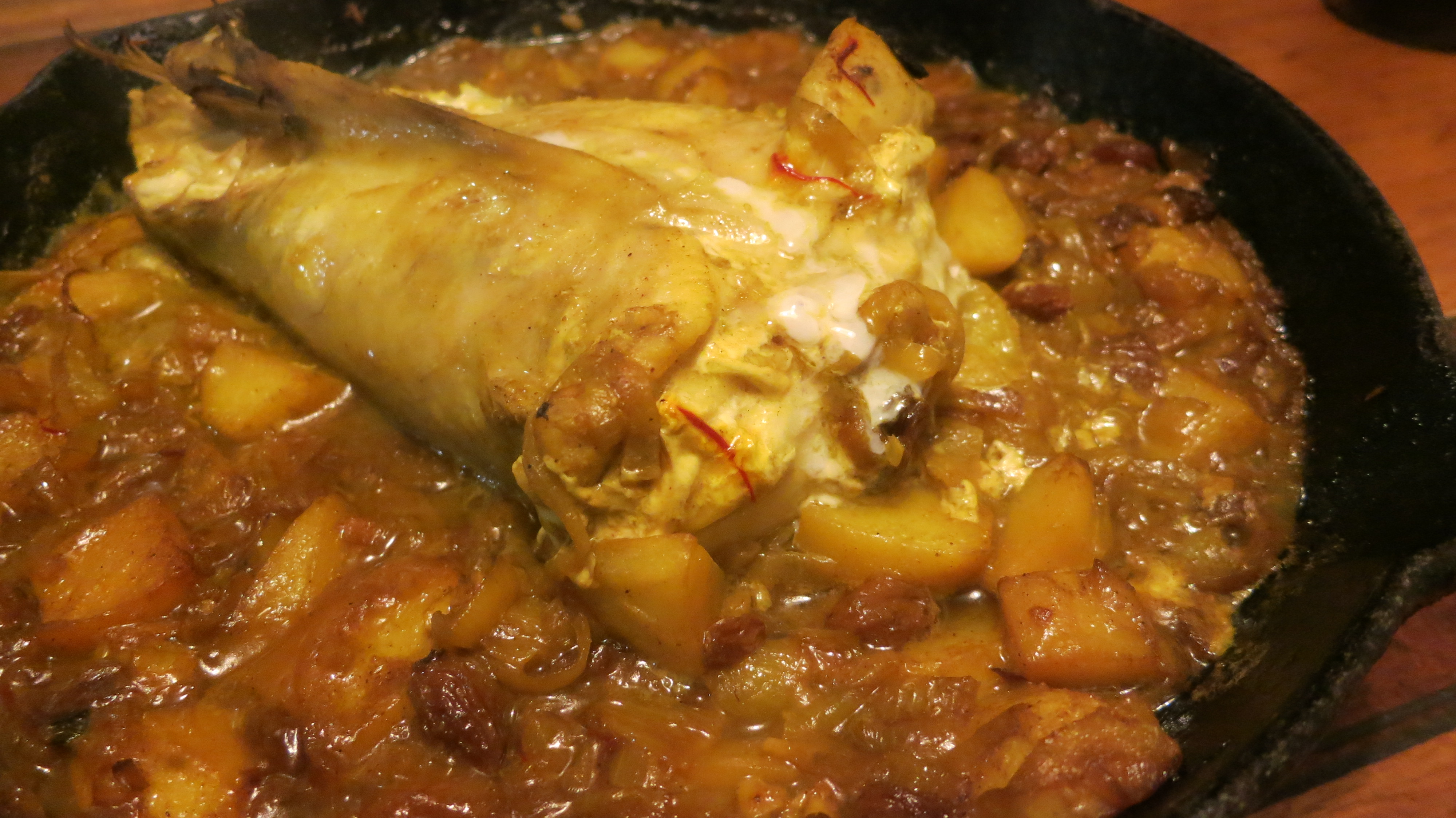 I headed up to the garden this evening to gather some salad and was instead seduced by the spinach which has really taken off. I picked a bucketful of it. Bright green and perky. This threw the dinner plans in a different direction altogether. By the time I arrived back in the house I was thinking of the Spanish dish of ‘Espinacas con Pasos y Pinones’ -Spinach with Raisins and Pinenuts. This dish was heavily influenced by the Moors and gives a slightly sweet and exotic twist to what would otherwise be plain wholesome spinach. This alone did not add up to a dinner , even though Popeye would have been delighted , so I made a pot of Fassoulia, which is a Lebanese stew of beans, barley and vegetables to go with.