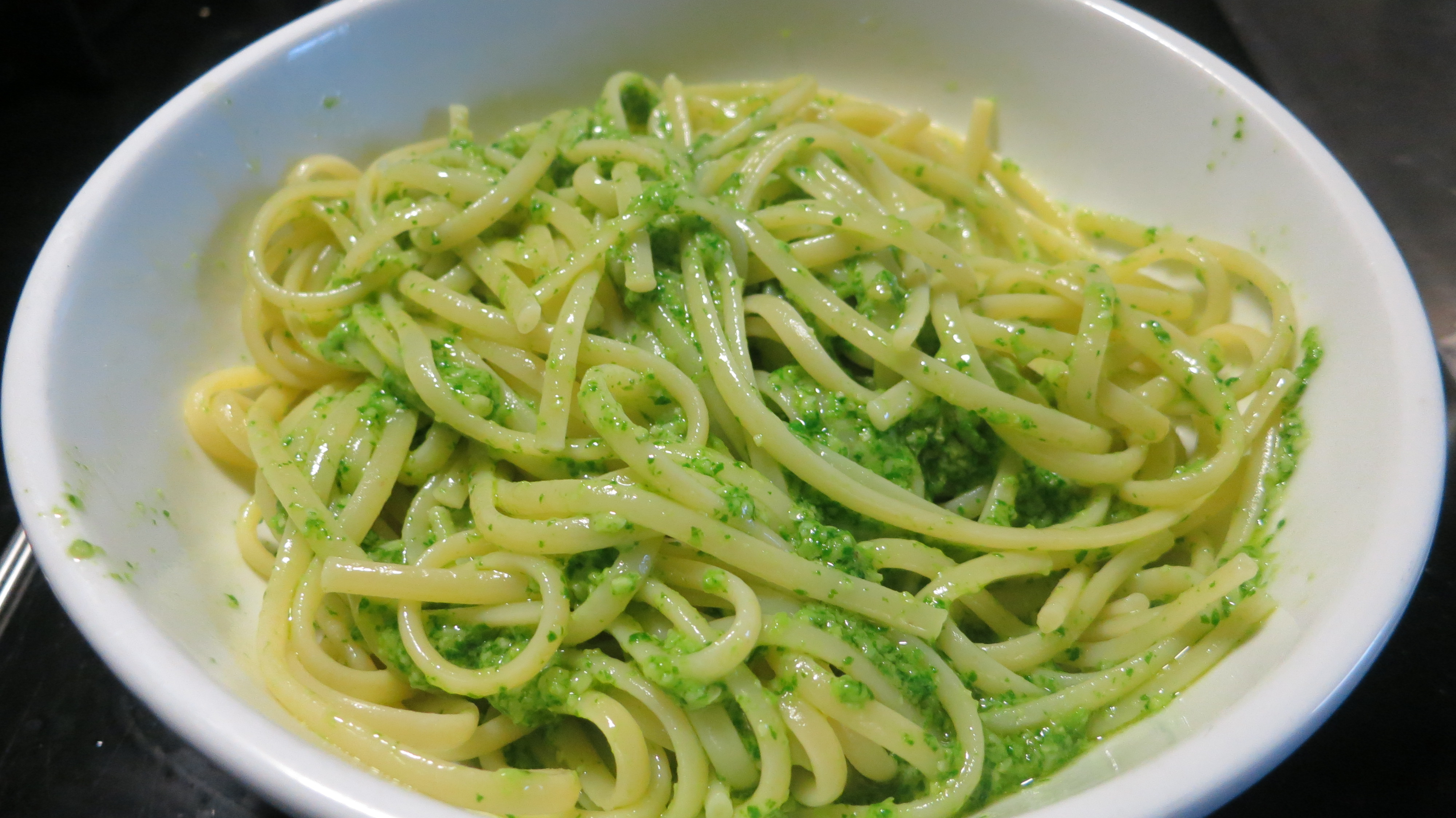 The thing to remember about woofas (willing workers on organic farms) is that they don’t necessarily know anything about vegetables and to send them on a picking mission unaccompanied is dodgy. The shop requested a bucket of spinach and a bucket of chard for tomorrow and our lovely woofa volunteered to go picking. This was such a tempting offer that after a brief ‘do you know’ conversation, off she went armed with two buckets. Some time later she returned with a beautiful bucketful of rainbow chard and a large pile of baby rocket. I was horrified, as for a moment I thought she’d destroyed the fledgling crop of rocket, but it’s fine. In fact it didn’t harm the rocket at all, as it does like to be picked, and I certainly wouldn’t have had the patience to get down and pick such baby leaves singularly. So no harm done and after having a spinach identifying and picking lesson we have the added bonus of rocket pesto with linguine for our dinner.