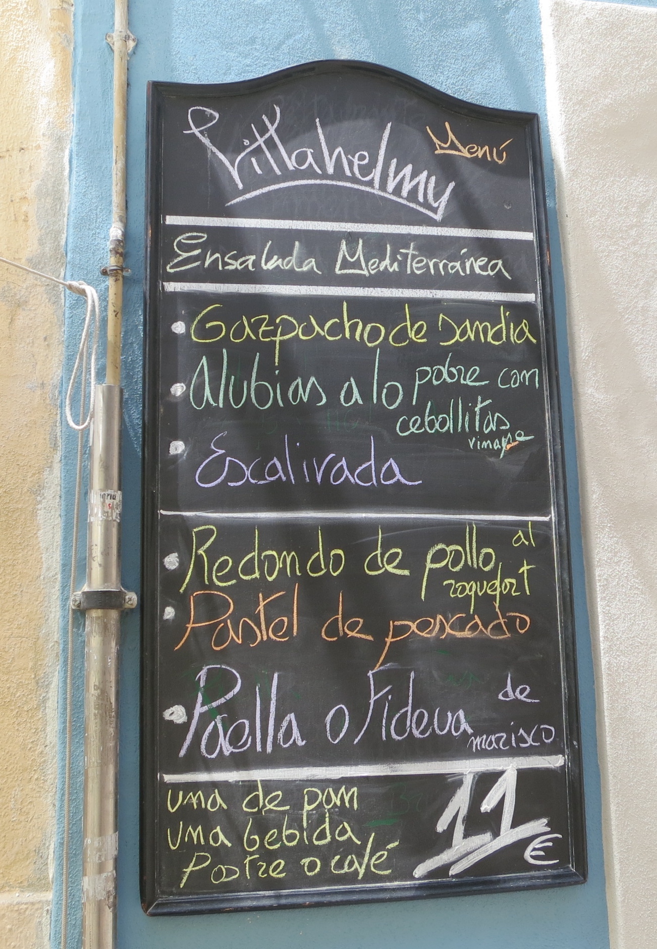 The Menu del Dia is the way to go in Spain if you like good value local food. Our menu was ¢11 for four courses and a glass of wine which is quite phenomenal. It never ceases to amaze me and we enjoyed everything that we ate.