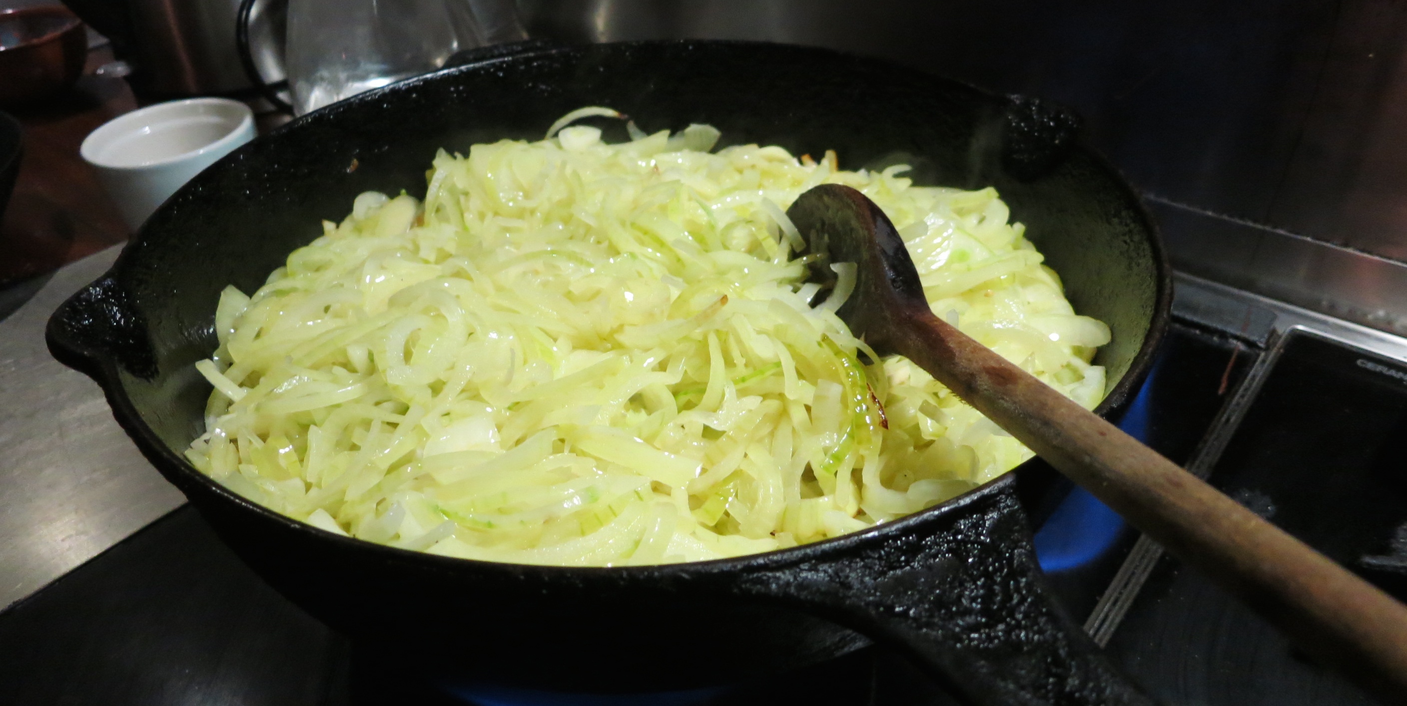 Fry on a fairly high heat until the onions become golden and begin to get crispy. Lift the onions out of the oil and leave to drain on a piece of kitchen paper.