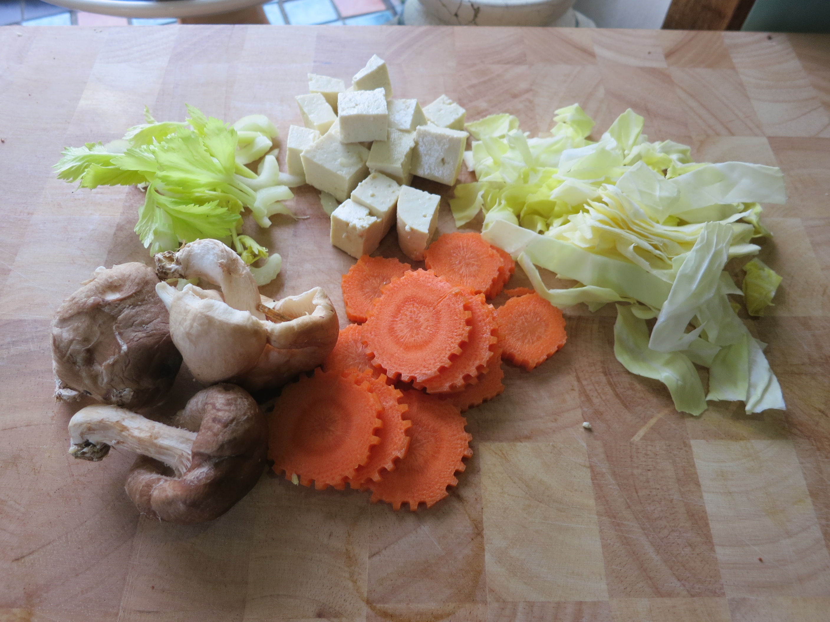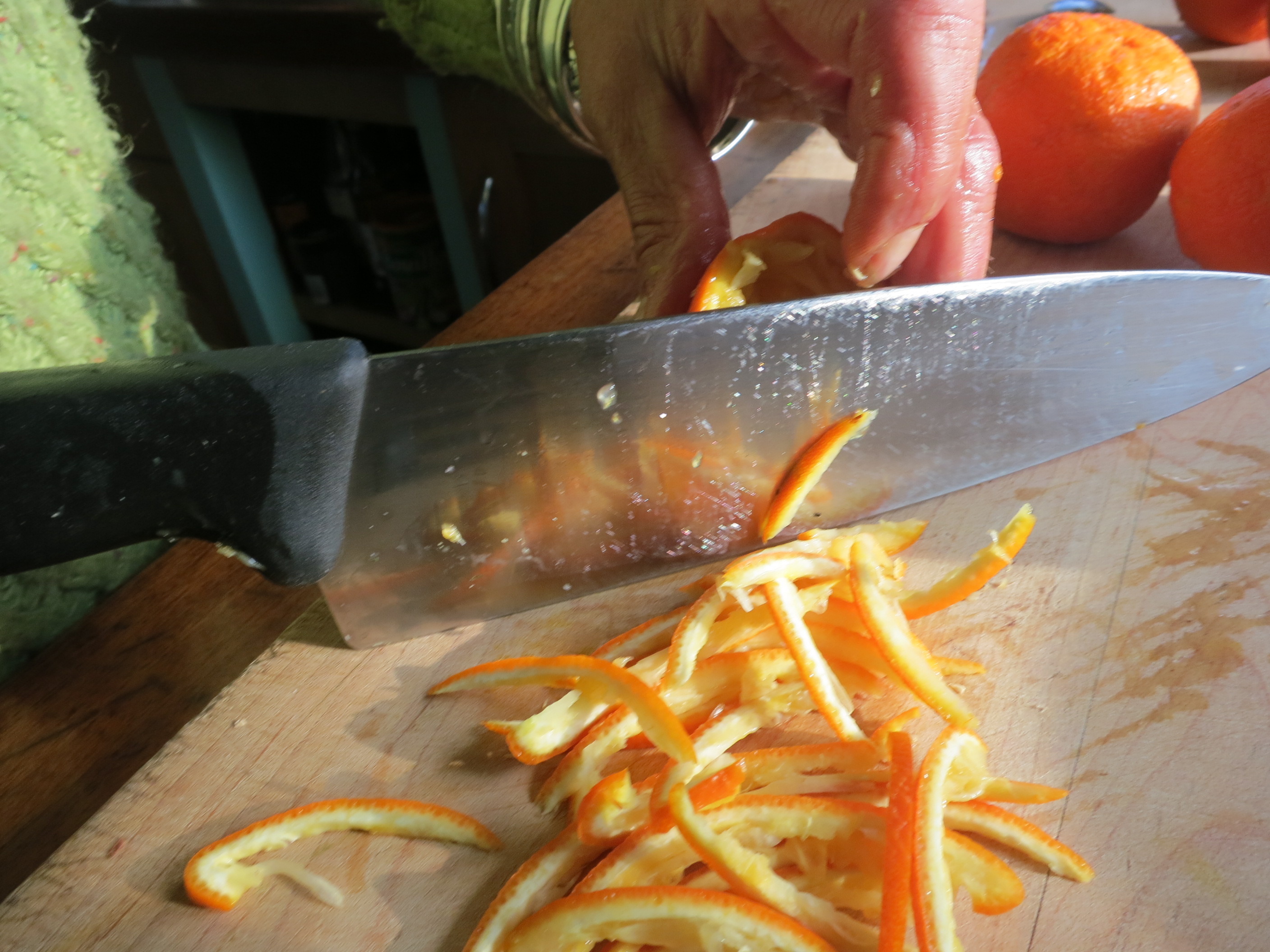 Peel the garlic and slice thinly, chop once or twice and put aside.