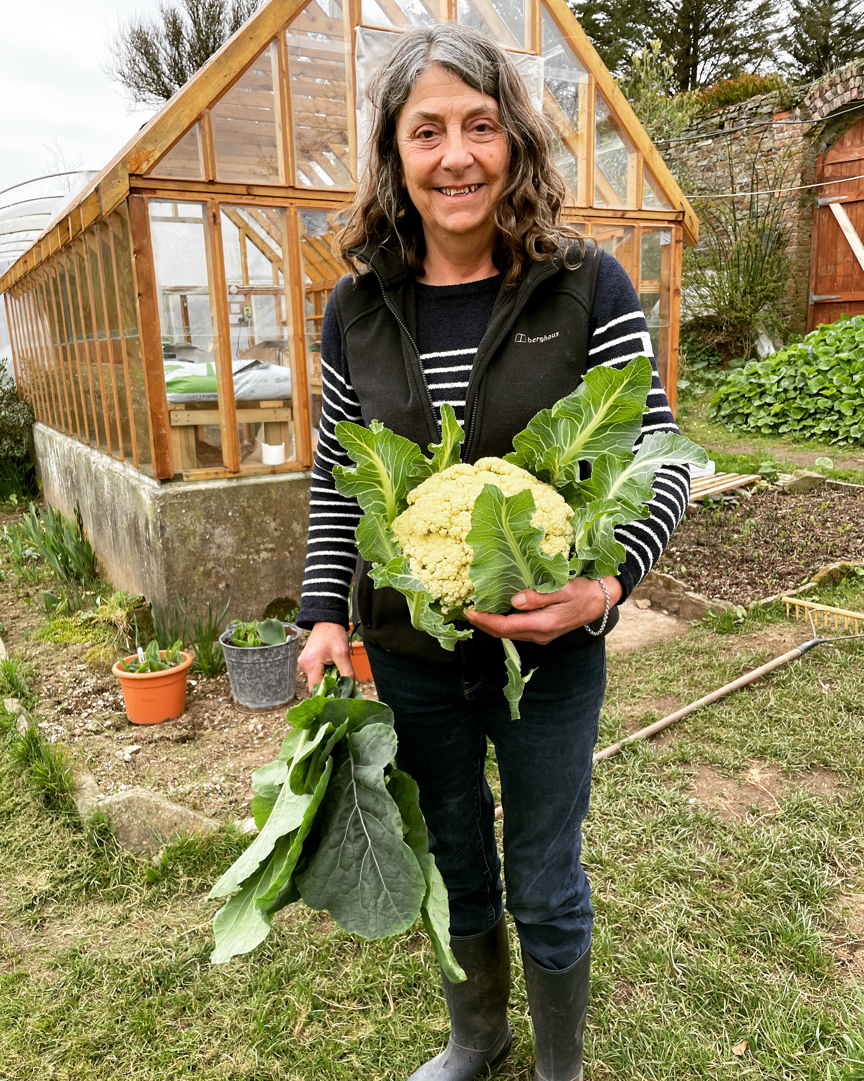 We have waited so long. I was convinced we would have caulis for Xmas but nope, nothing happened . We just had these huge plants on long stems that seemed to be in some kind of animated suspension and now, all at once they are emerging. It’s far from the first cauliflowers that we have grown but usually they arrive rather inconveniently in August or are very welcome in October and November. Last years lockdown meant we got our seeds where we could and I must have picked up this winter variety. I’ve now checked it out and discovered that winter cauliflowers take 40-50 weeks to mature which is quite some time to nurture a vegetable but they are so welcome. A joy to the eye and they’re going to be exciting to eat, or perhaps I should say a challenge.
