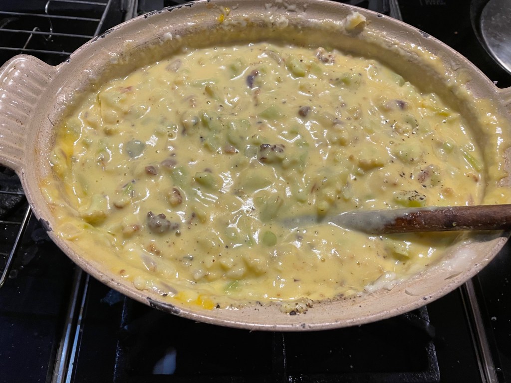 We regularly make cauliflower fritters and cauliflower pakoras which are both delicious but last night I broke out and and made a cauliflower Sfomato with the enormous cauliflower that I had picked. Sformato looks like a cake which has a touch of a soufflé to it. It’s also enormous, enough to feed 6- 8 for dinner or 4 for dinner and 4 for lunch!