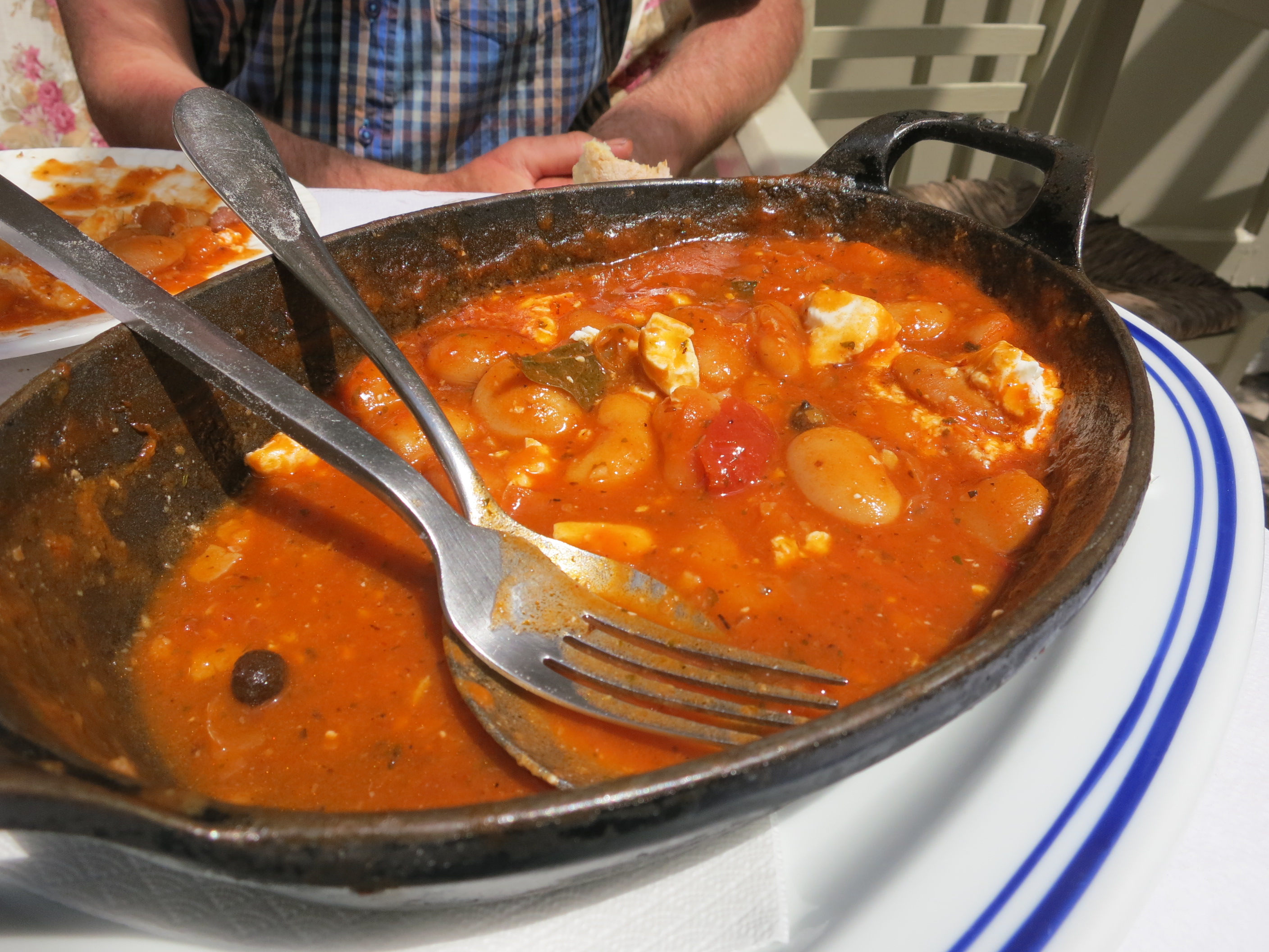 Gemista, which means ‘filled with’ in Greek, are ripe vegetables stuffed with rice and herbs then baked with potato wedges and olive oil. Tomatoes, peppers and courgettes all enjoy this treatment. It’s an ideal recipe to make for sharing, perfect for a big family dinner or entertaining. Once the vegetable preparation is done the dish goes into the oven for an hour, then comes to out relax for at least 30 minutes before serving. In Greece this dish is not served hot. Letting everything sit allows the juices to settle and flavours develop.